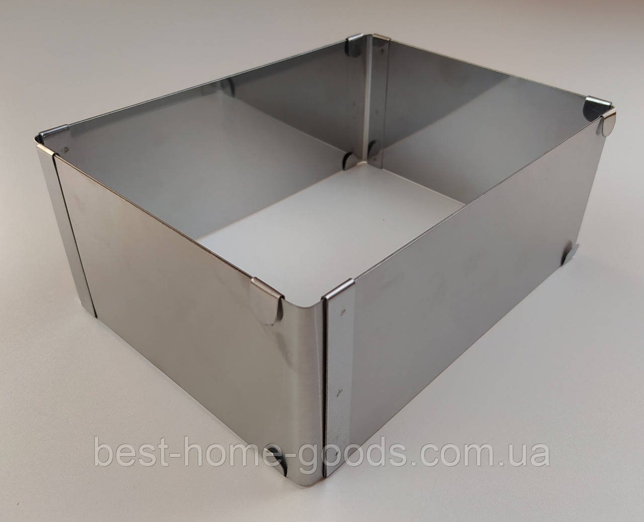Розсувна форма для випічки прямокутна 15–20 см | нерж. сталь | висота 8.5 см | регулюється до 28–38 см | торт, мус, суфле, желе