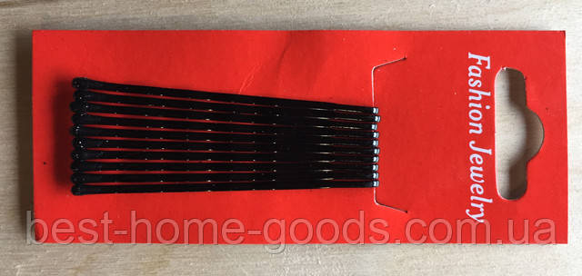 Fashion Jewerly – металеві шпильки-невидимки для волосся 5.5 см, чорні, хвилясті з кульками, 10 шт у блістері, надійна фіксація