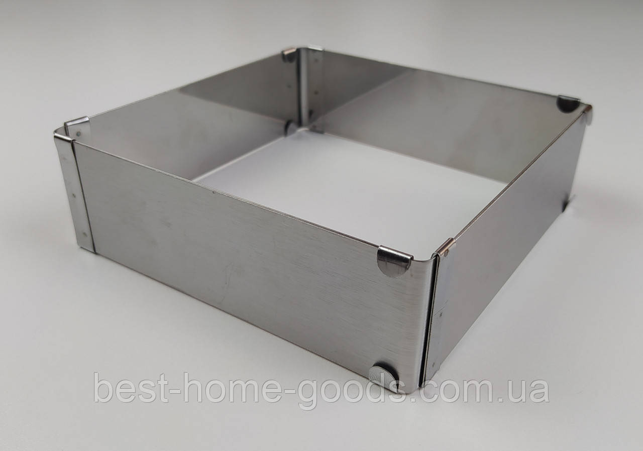 Розсувна форма для випічки квадратна 16×16 см | нержавіюча сталь | висота 5 см | регулюється до 28×28 см | форма для торта, желе