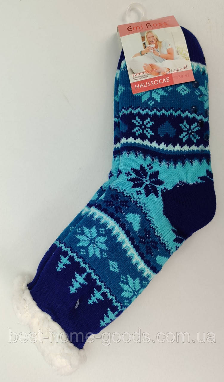 Шкарпетки жіночі флісові теплі | домашні | антиковзні | розміри 35–38 і 39–41 | узори етно | кольори синій, голубий