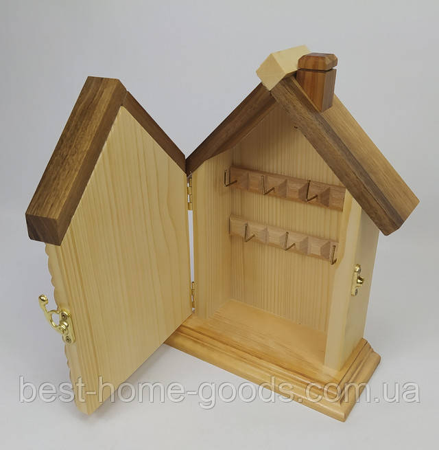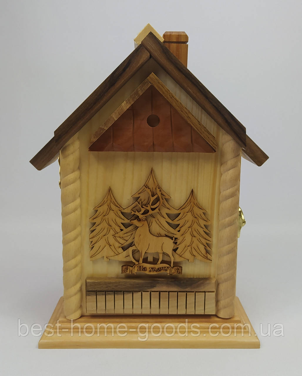 Ключниця настінна дерев'яна ручної роботи "Будиночок" на шість гачків │ Настінна ключниця з дерева │ Органайзер для ключів