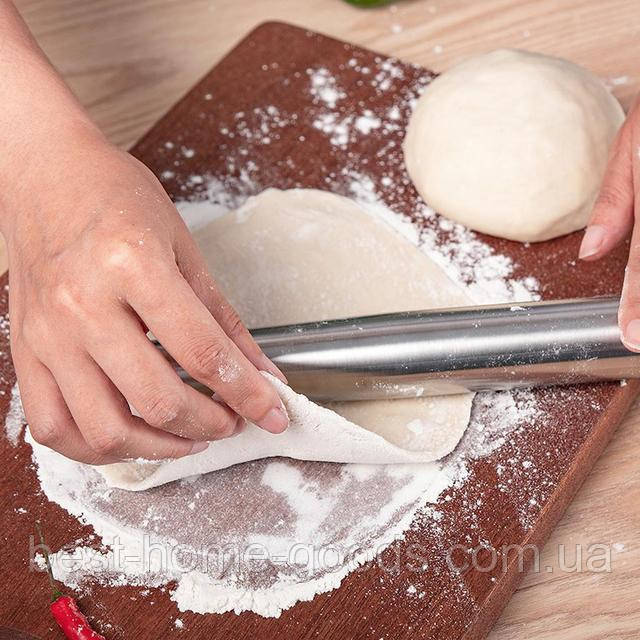 Качалка з нержавіючої сталі 33 см для тіста та мастики | Компактна кухонна качалка без ручок | Професійний кондитерський інструмен