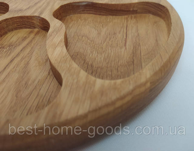 Дерев’яна тарілка менажниця з дуба на 5 секцій d25 см — натуральний посуд ручної роботи для подачі страв